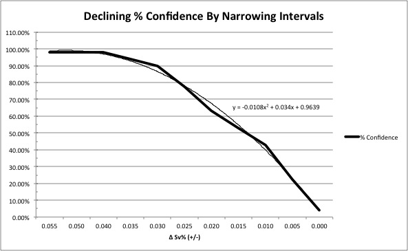 Over the entire set, these were the intervals for corresponding levels of confidence: