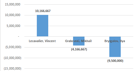 With his $22.5 million contract from the Flyers, Vincent Lecavalier has already made up more than the difference from his buy-out, but he could potentially have two more earning years once his current contract expires. On the other end of the spectrum, Ilya Bryzgalov has six years to make up a $9.5 million deficit.