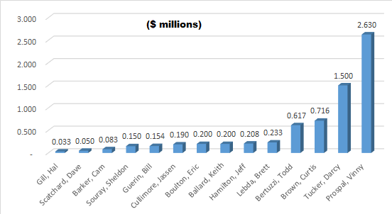 Vinny Prospal leads the group with more than $2.6 million earned above the money lost to buy-out. After Tampa Bay bought the final three years of his contract, he earned $6.13 million on three one-year deals.