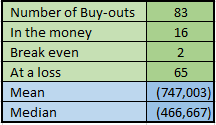 Only 16 of the 83 players bought-out made were in the black due to their buy-outs.