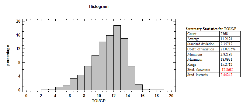 It is also interesting to see that only defensive zone starts have a skewed shape, and by quite a bit too.