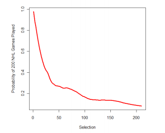 Michael Schuckers, on the other hand, looked at draft pick value from a different angle. What Schuckers did was use probability of draft success to create an estimate for a pick’s “true value.”
