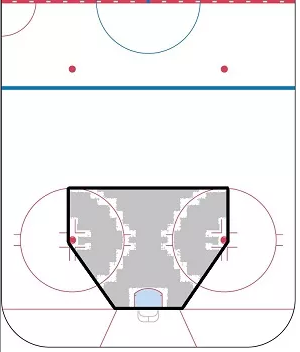 The happy medium here would seem to be scoring chances. If a team is getting scoring chances when set up in formation, that’s a pretty good sign that they are doing a good job with that particular aspect of the man advantage. When we talk about scoring chances, we’re normally referring to the home plate area (the inner and outer slot, basically, seen at left courtesy of Jewels From The Crown).