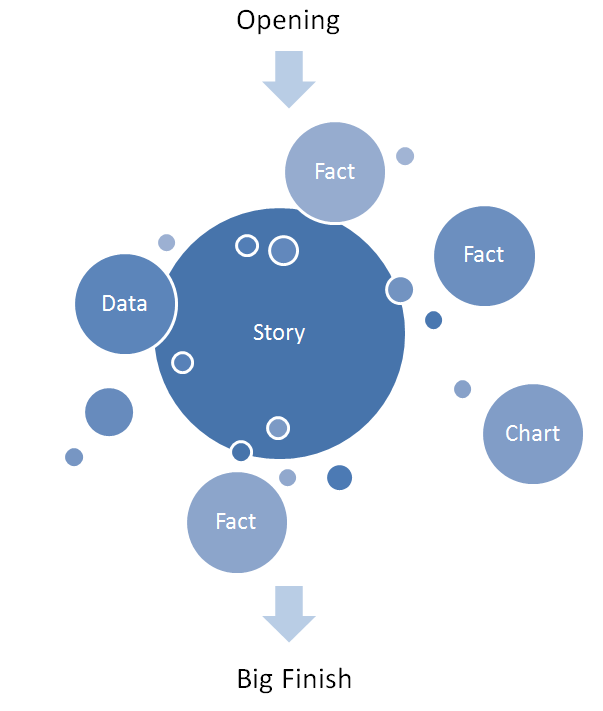 And that’s the key to using storytelling as a form of persuasion: your story not only needs to relate to your audience and be relevant to the topic at hand, but it can’t be bereft of facts and details. In contrast to the linear, fact-based traditional approach to most technical presentations shown above, the most persuasive and memorable presentations will have elements of storytelling with facts sprinkled into the narrative: