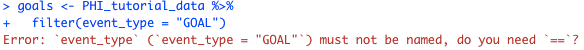 # Filter down to just goals goals <- PHI_tutorial_data %>% filter(event_type == "GOAL")